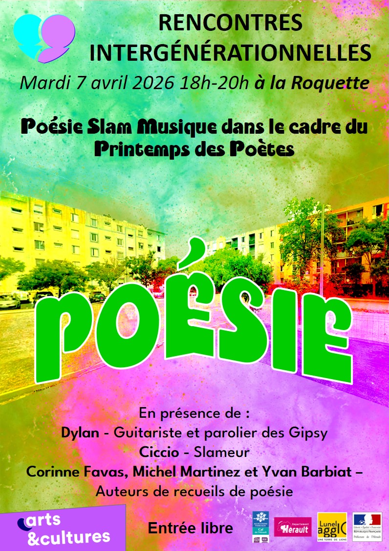 Session poésie – rencontres intergénérationnelles à la Roquette 7 avril // 18h00 - 20h00 36 Place Jean Jaures 36 Place Jean Jaures, Lunel, France Gratuit