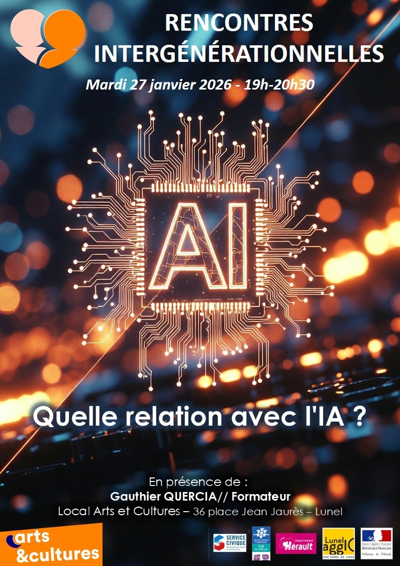Une rencontre intergénérationnelle, sous le signe de l'intelligence artificielle, avec Gauthier Quercia, ce mardi 27 Janvier de 19 à 20 H 30.